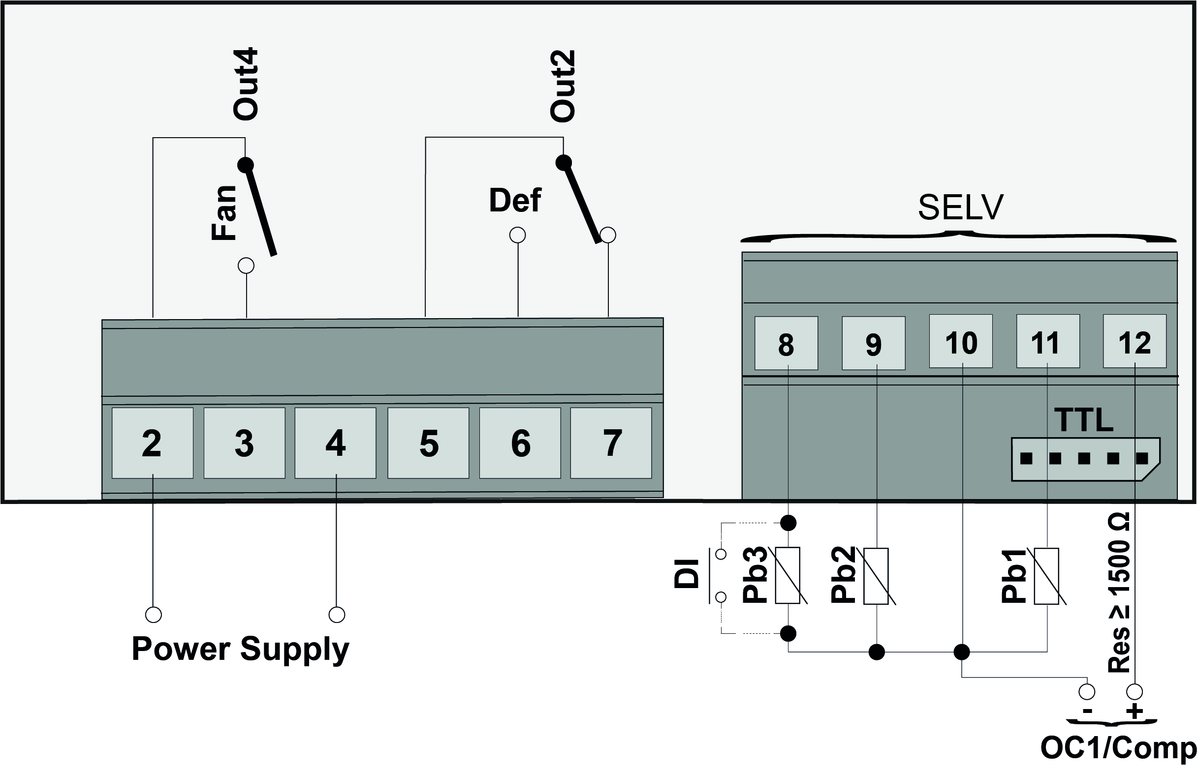 TTL port for connection to Unicard or ModBus monitoring device